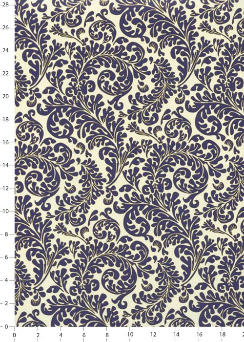 Papier fantaisie "Feuillage bleu fond ivoire réhaussé or" de 85g/m².