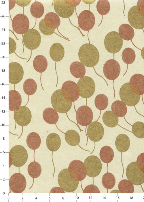 Papier népalais imprimé envol de ballons or et cuivre de fabrication 100% artisanale parfait pour sublimer vos réalisations. Le papiers Lokta est un papier fait à la main. Ce type de fabrication artisanale peut laisser apparaitre des imperfections (irrégularités, petites tâches, fibre végétale…) ou des irrégularités de teintes d'une feuille à l'autre.