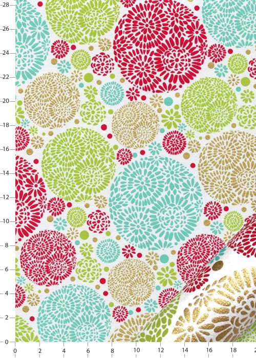 Papier indien imprimé "feu d'artifice" turquoise, vert anis, rouge et or.