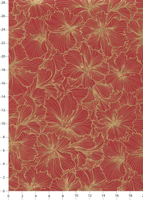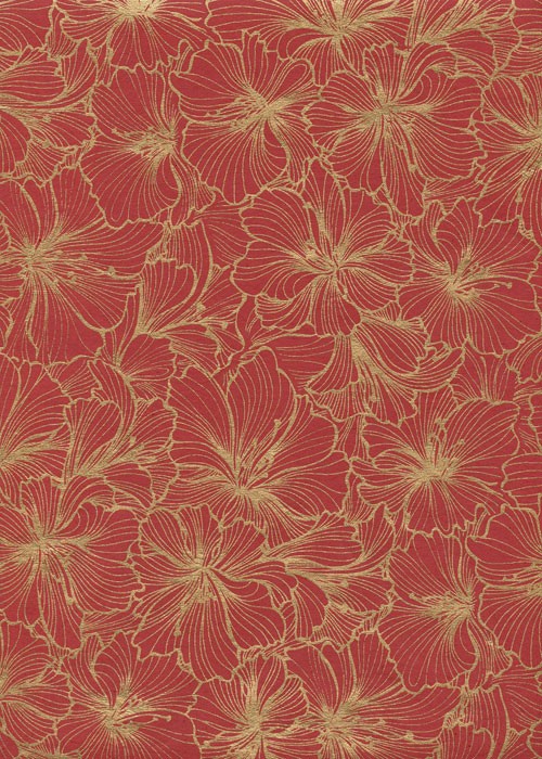 Papier indien Hibiscus or sur fond rouge