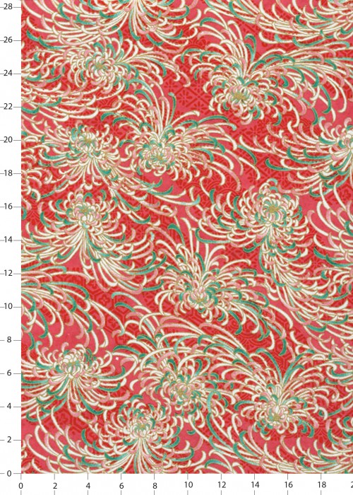 Le luxueux papier japonais Chiyogami est fabriqué de manière artisanale dans la pure tradition du washi. Sa composition en fibre de Kozo et de Mitsumata, lui assure souplesse et solidité.